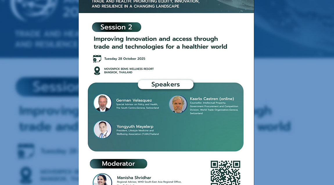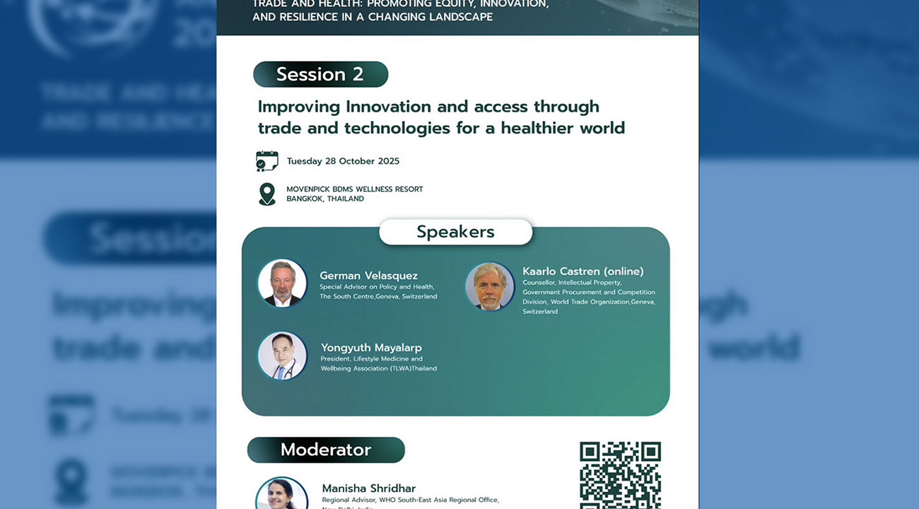 ร้อยเอก นายแพทย์ ยงยุทธ มัยลาภ นายกสมาคมเวชศาสตร์วิถีชีวิตและสุขภาวะไทย ได้รับเชิญจากสถาบันระหว่างประเทศเพื่อการค้าและการพัฒนาร่วมบรรยายในการประชุม International Trade and Health Conference 2025